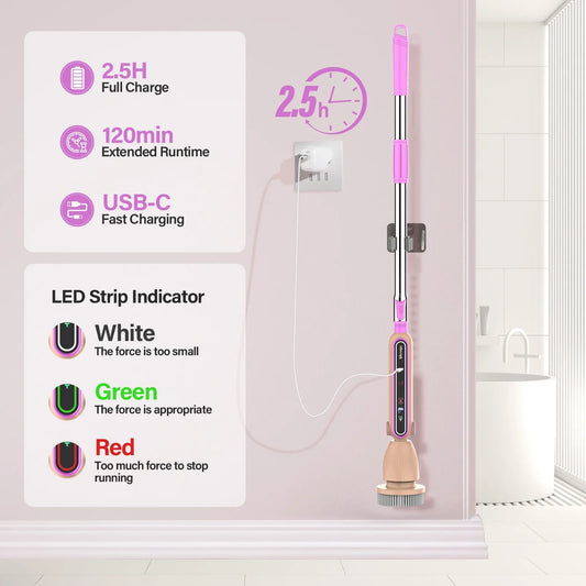 Electric Spin Scrubber 7 Heads Electric Scrubber for Cleaning,Shower Scrubber with Long Handle