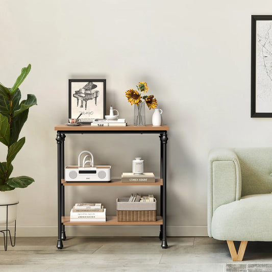 JOZ Industrial Console Table: Rustic Wood Sofa Table with 3-Tier Shelves for Entryway and Living Room
