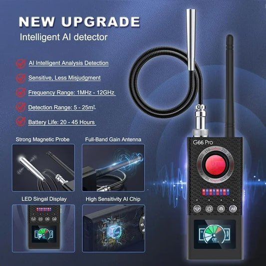 Hidden Camera Detector, G66 Pro Bug Detector with LED Display, GPS Detector Bug Sweeper Listening Device Detector, Infrared Hidden Camera Finder for Hotels, Travels, Cars, Offices