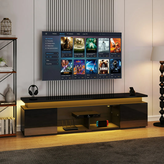 Anrist Modern TV Stand for 85 inch TVs with LED Lights Power Outlet Entertainment Center Media Console for Living Room,Black