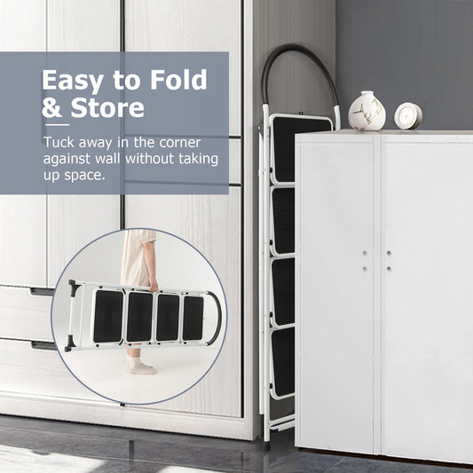 spanspace 4 Step Ladder Portable Folding Lightweight Stool with Anti-Slip Grip , Wide Anti-Slip Platform Steps, 330 lbs Capacity for Closet, Kitchen, Office, Home, White
