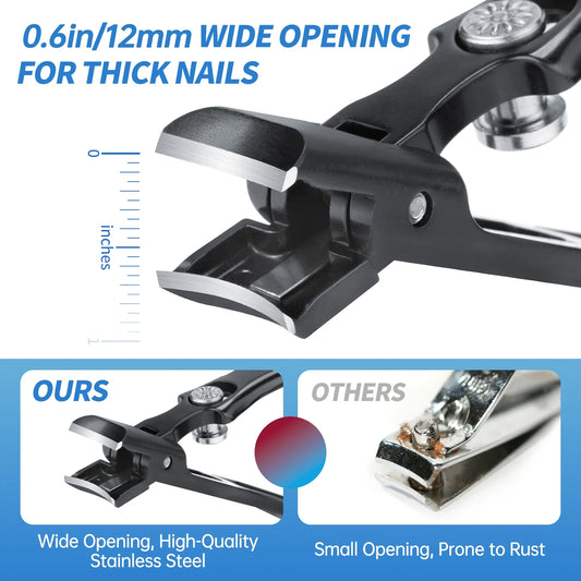 NiHome Heavy Duty Nail Clippers for Thick Hard Nails Set of 2, Wide Opening& Slanted Curved Blade Precision Ingrown Toenail Clippers, Extended Anti-Slip Handles and Ultra Sharp Stainless-Steel Blades