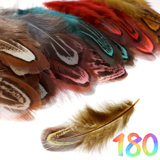 180PCS Colored Feathers 2-3 in, 9 Colors Pheasant Feathers for DIY Crafts Dream Catcher Art Earrings Carnival Costumes Wedding Party Decorations