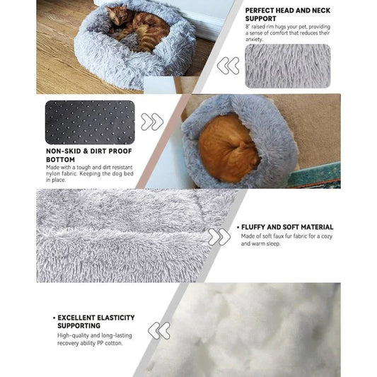 QKURT Cat Bed for Indoor Cats, Small Dog Beds for Small Dogs, Soft Long Plush Cushion Washable Puppy Bed,Self-Warming Square Cat Bed Anti-Slip Bottom Cushion (26 x 22 x 8 inch, Grey)