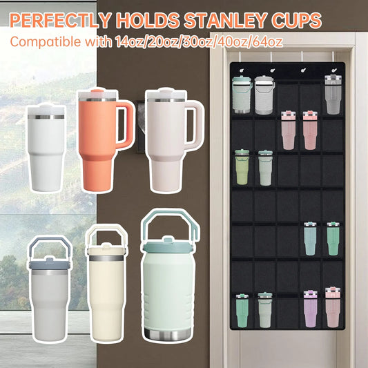 NiHome 35 Pockets Door Hanging Tumbler Organizer for Stanley in Kitchen, Pantry, Bedroom, Bathroom, Multi-Functional Large Capacity Elastic Mesh Secure Storage Cup Holder, Foldable for Home and RV