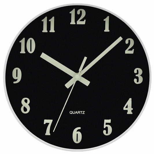 QKURT Modern Night Light Wall Clock, 10 Inch Silent Non-Ticking Quartz Wall Clocks, Glow in The Dark Battery Operated Decorative Wall Clock for Bedroom, Kitchen, Living Room