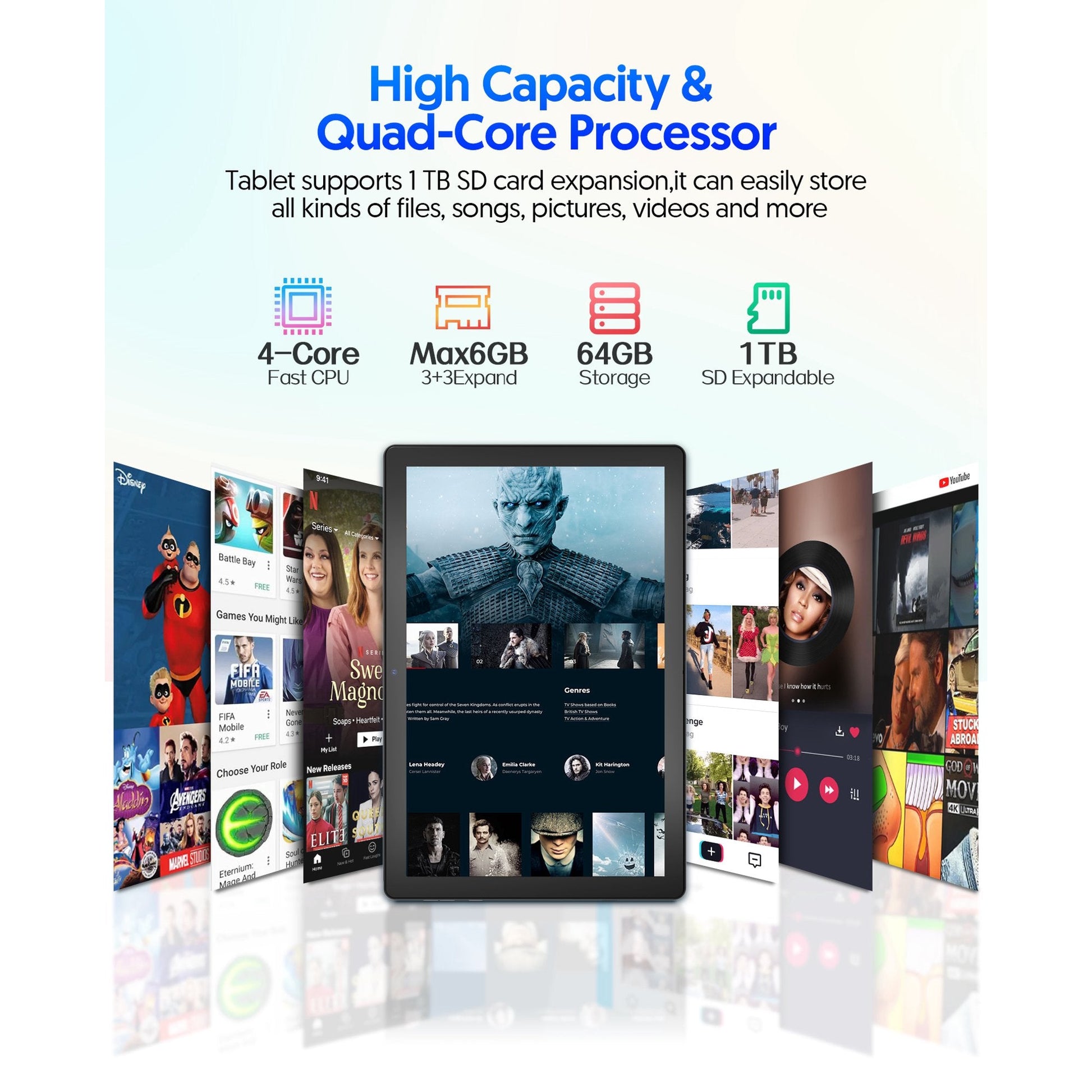 10 Inch Android Tablet, 2024 Newest Android 13 Tablet 64GB ROM+7GB RAM, Octa-Core Powerful 5G WiFi Tablet, 2MP+8MP Camera, Bluetooth