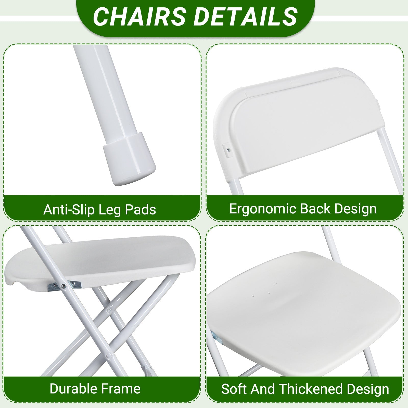 10 Pack Folding Chairs Stackable Wedding Party Event Chair With Plastic Seat and Back for Adults, White