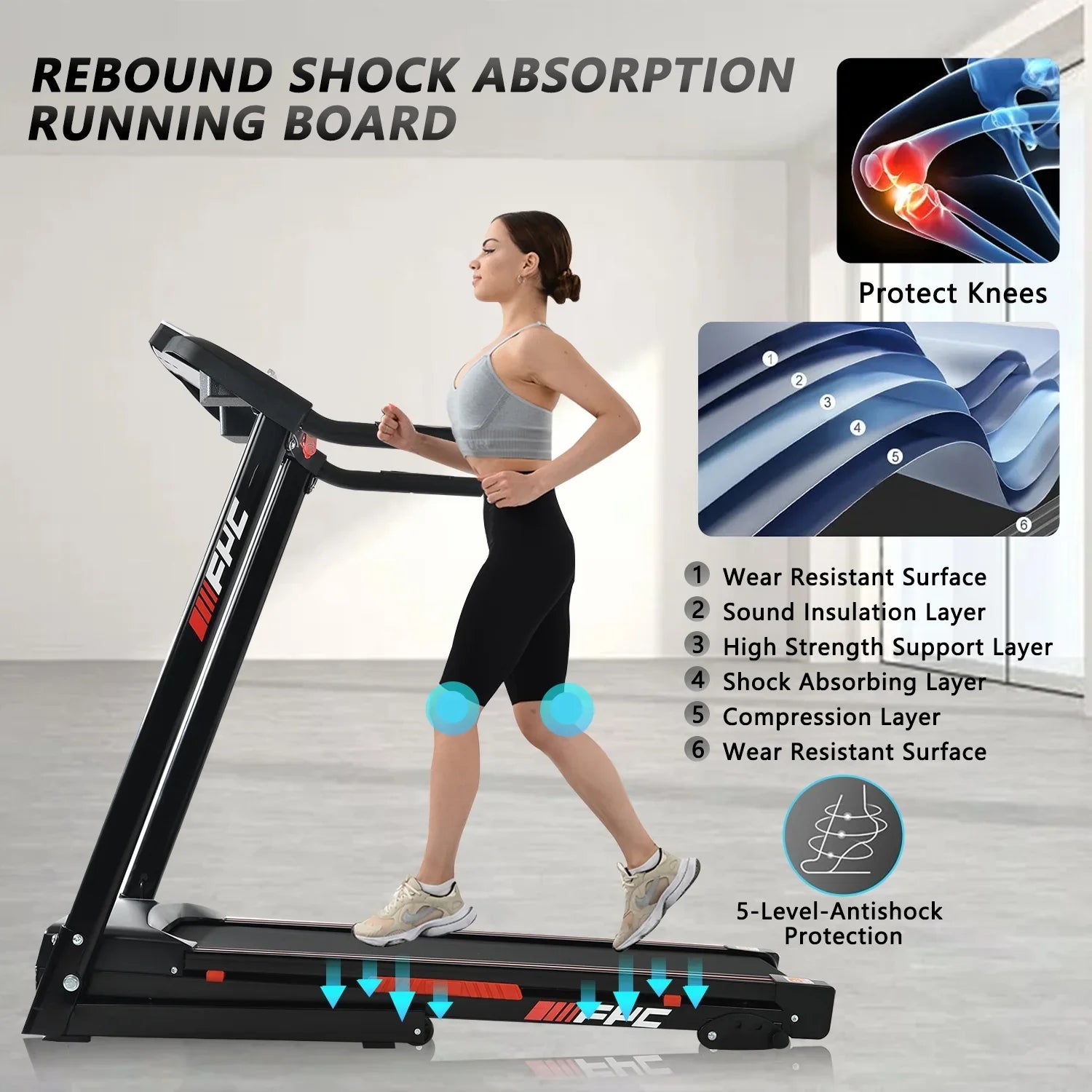 3.5HP Folding Incline Treadmill with 330 LB Capacity 15 Preset Programs MP3 Electric Walking Treadmill Machine For Home
