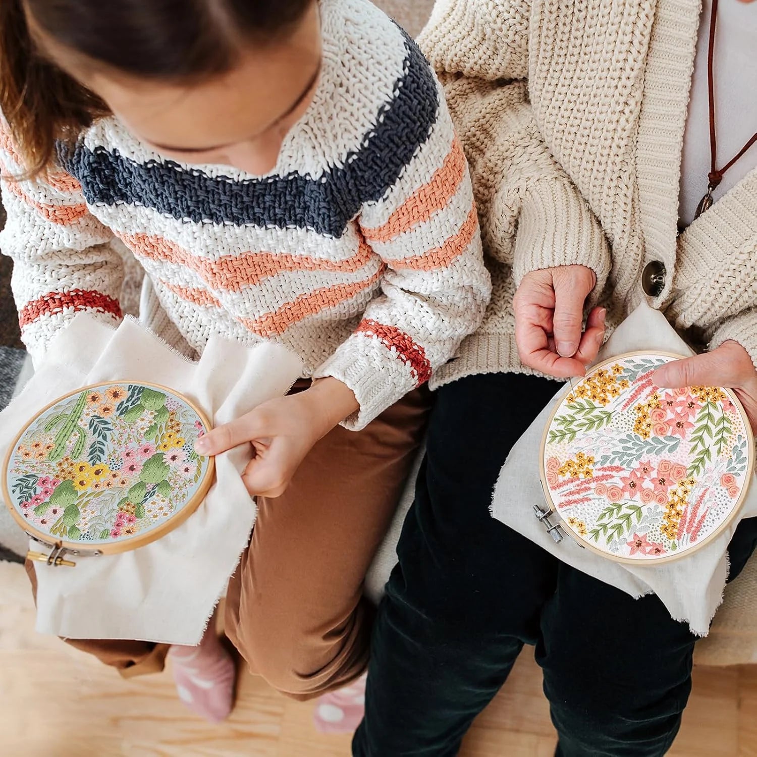3 Pack Embroidery Kit for Beginners, Sewing Cross Stitch Starter Set with Flowers and Plants Pattern Stamped Cloth Hoops Threads and Needles, DIY Handmade Sewing Crafts