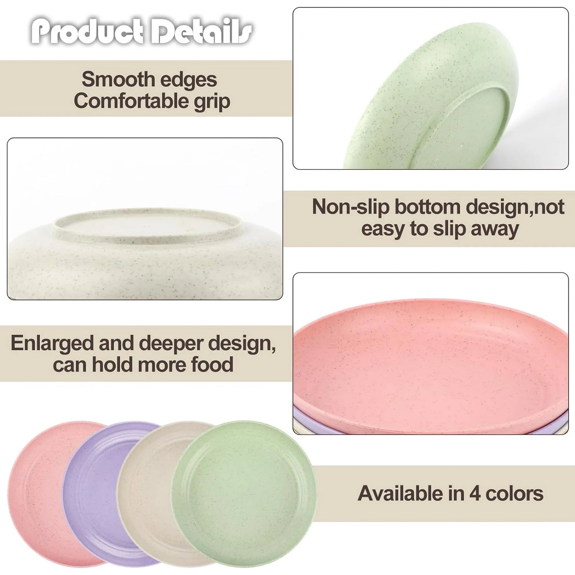 4pcs Dinner Plates 8inch Reusable Plastic Plates Microwave and Dishwasher Safe Dishes