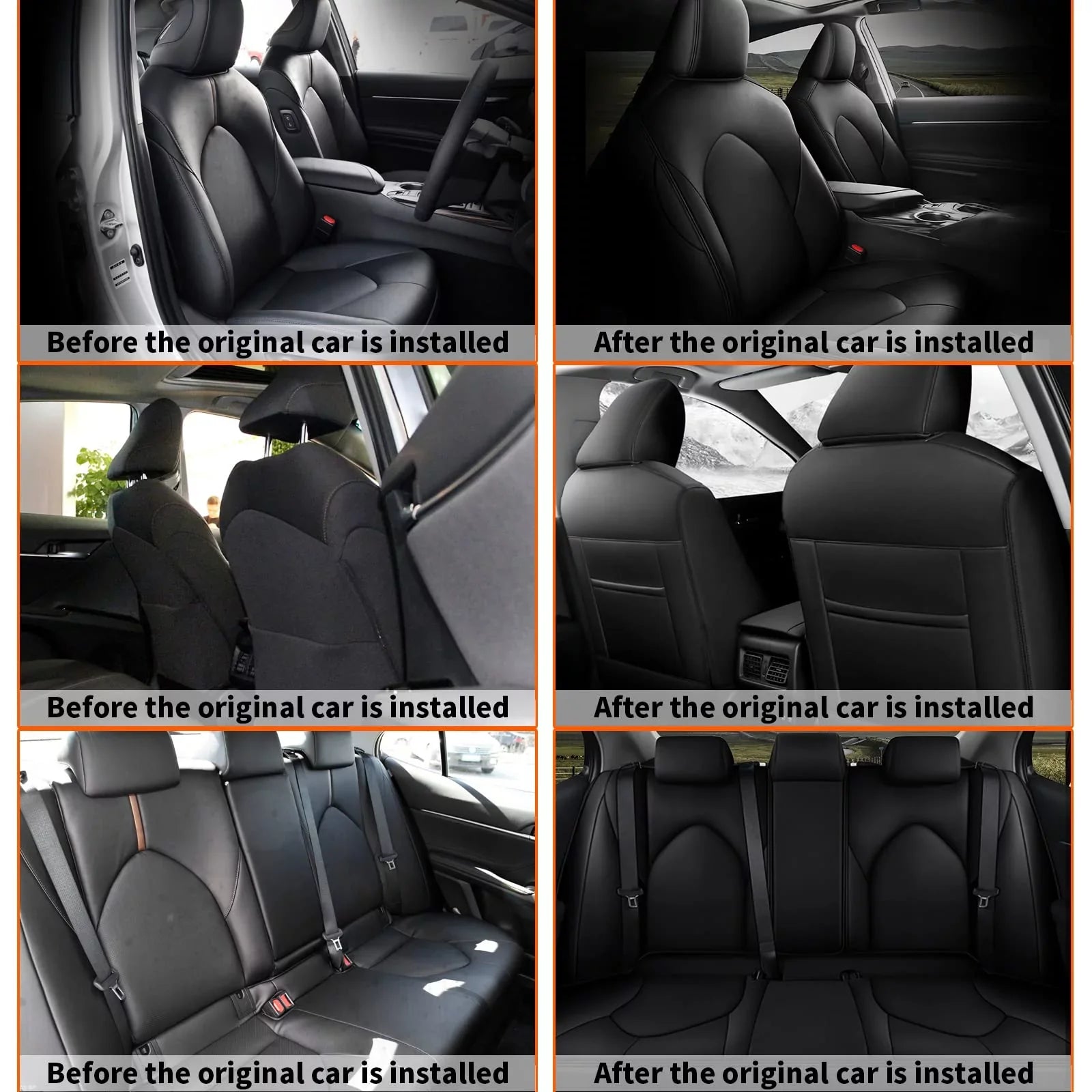 AOMSAZTO Custom Seat Covers Full Set Black For Toyota Camry Hybrid 2018-2023( LE/SE )Faux Leather Seat Protector Waterproof