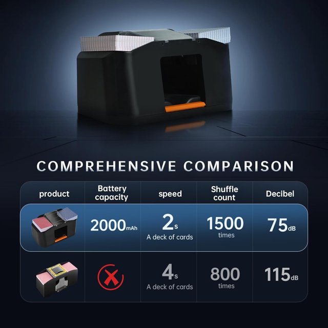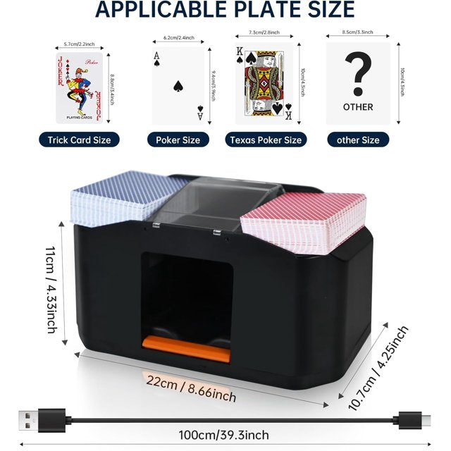 Automatic Card Shuffler 1/2 Decks, Electronic Casino Poker Card Shuffling Machine - Battery Operated for Phase10, Texas Hold'em, Poker, Home Card Games (Black)