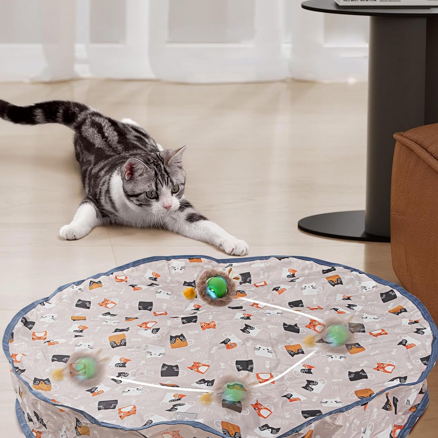 Blue Interactive Cat Toys Ball Fast Rolling in Pouch,Interactive Cat Toy