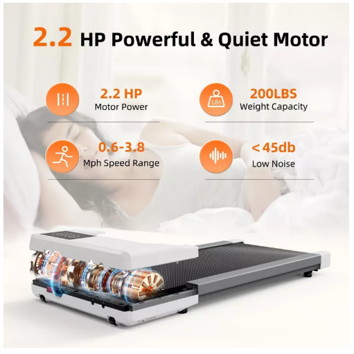 DeerRun 3-in-1 Portable Smart 2.5 HP Under Desk Treadmill With LED Display, Installation-Free Treadmill for Home Office, 300 lbs Capacity