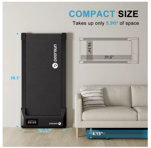 DeerRun 35.43 In Long Run Area Walking Pad, 2 in 1 Under Desk Treadmill, Walking Pad Treadmill Under Desk