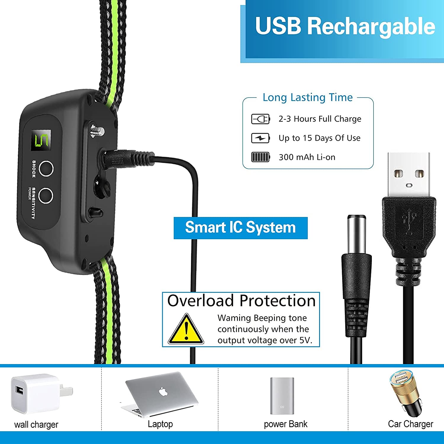 Dog Bark Collar, Bark Shock Collar with Beep Vibration Shock, Bark Collar for Large Medium Small Dogs, Rechargeable Humane Anti Barking Training Collar with 5 Adjustable Sensitivity