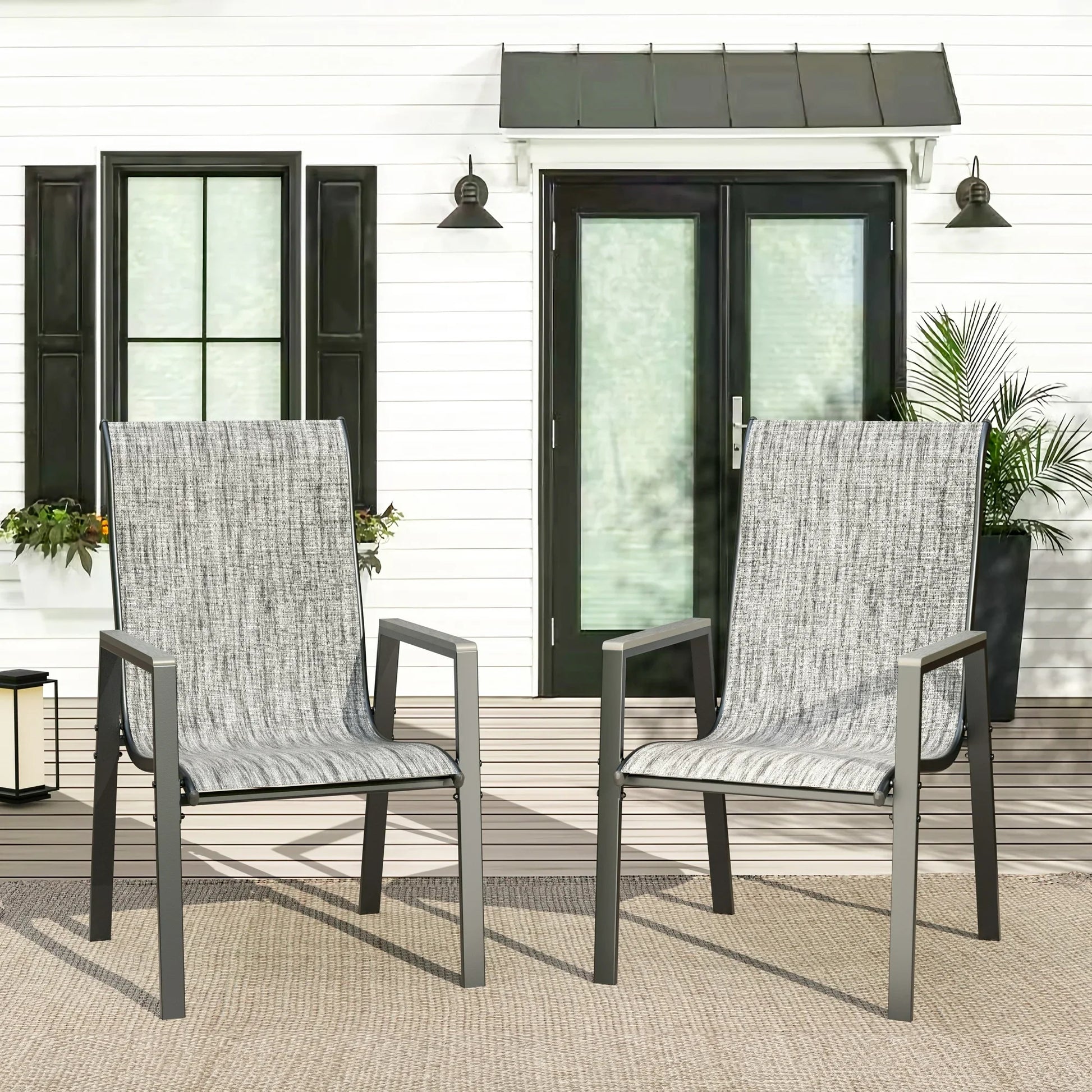 ELPOSUN Outdoor Patio Dining Chairs Set of 2, Stackable Aluminum Chairs with Armrest,Durable Frame for Lawn Garden Backyard, Light Gray