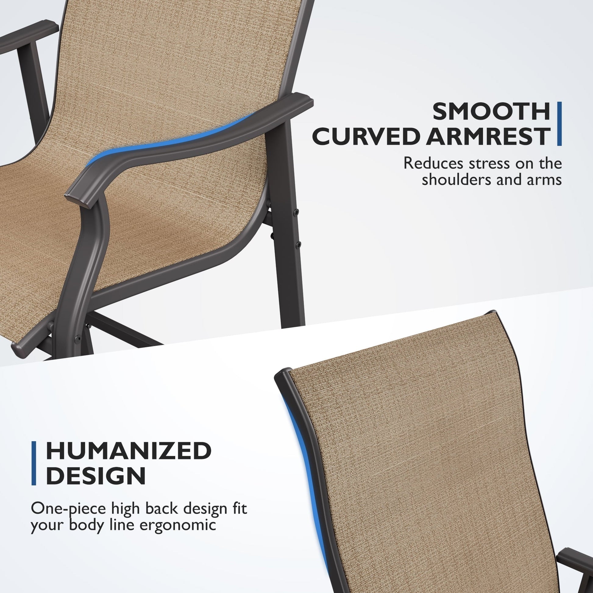 ELPOSUN Patio Bar Stools Set of 2, Outdoor Bar Height Patio Chairs for Backyard, Pool, Garden, Deck with High Back and Armrest, All-Weather Mesh, 300lb Capacity, Khaki