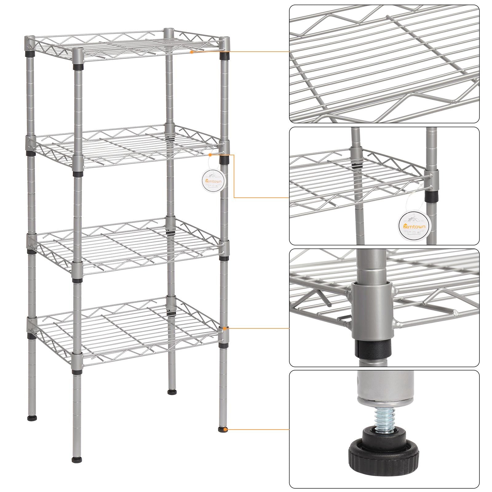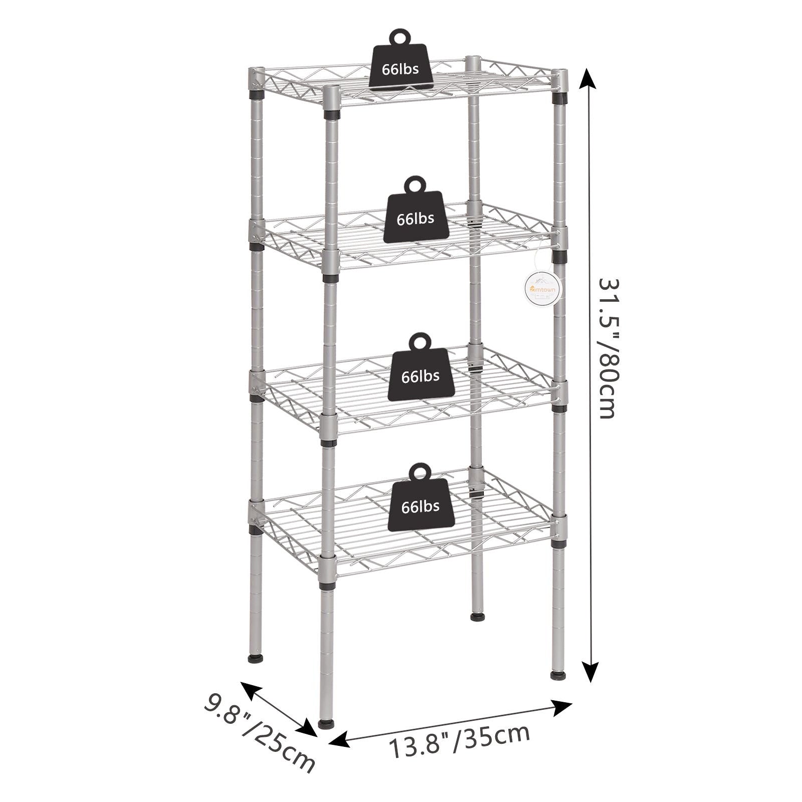 FCH 4 Tier Wire Shelving, Adjustable Storage Rack Unit for Garage Kitchen, Greenhouse Planting Shelving, 13.8”L x 9.8”W x 31.5”H