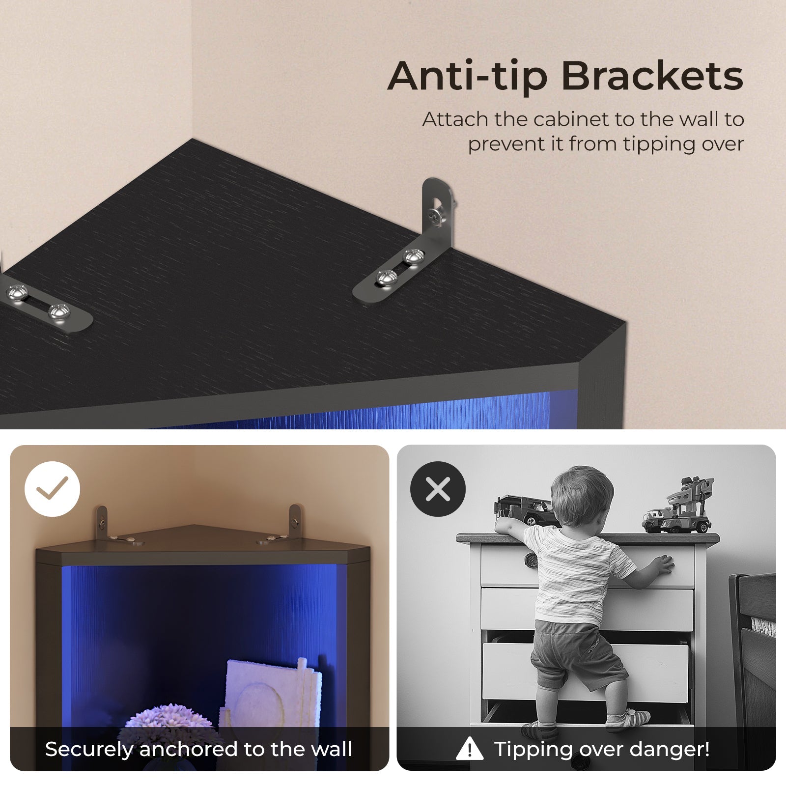 FCH 5-Tier Corner Bookshelf Corner Bookcase Display Storage Rack with LED USB Ports Outlets Black