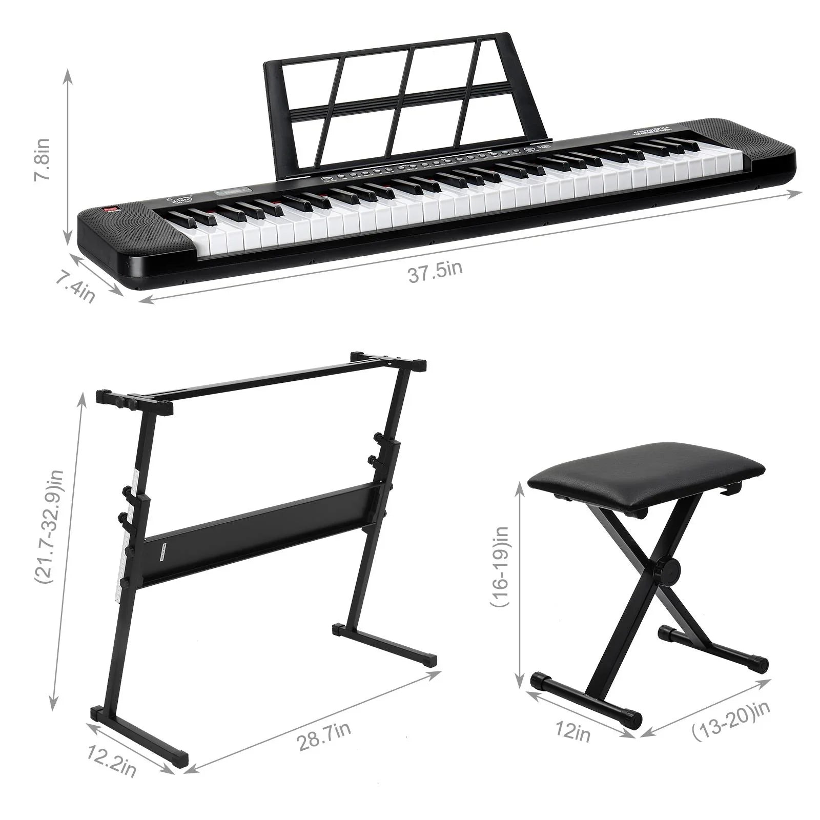 Glarry 61 Key Lighting Keyboard with Piano Stand, Piano Bench, Built In Speakers for Beginners