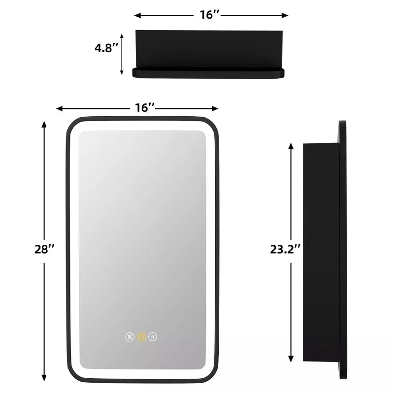 HBEZON Medicine Cabinet with Mirrors and Lights, Recess/Wall Mount Bathroom Cabinet, 3 Mode LED Lights, Anti Fog, Dimmable, Memory Function