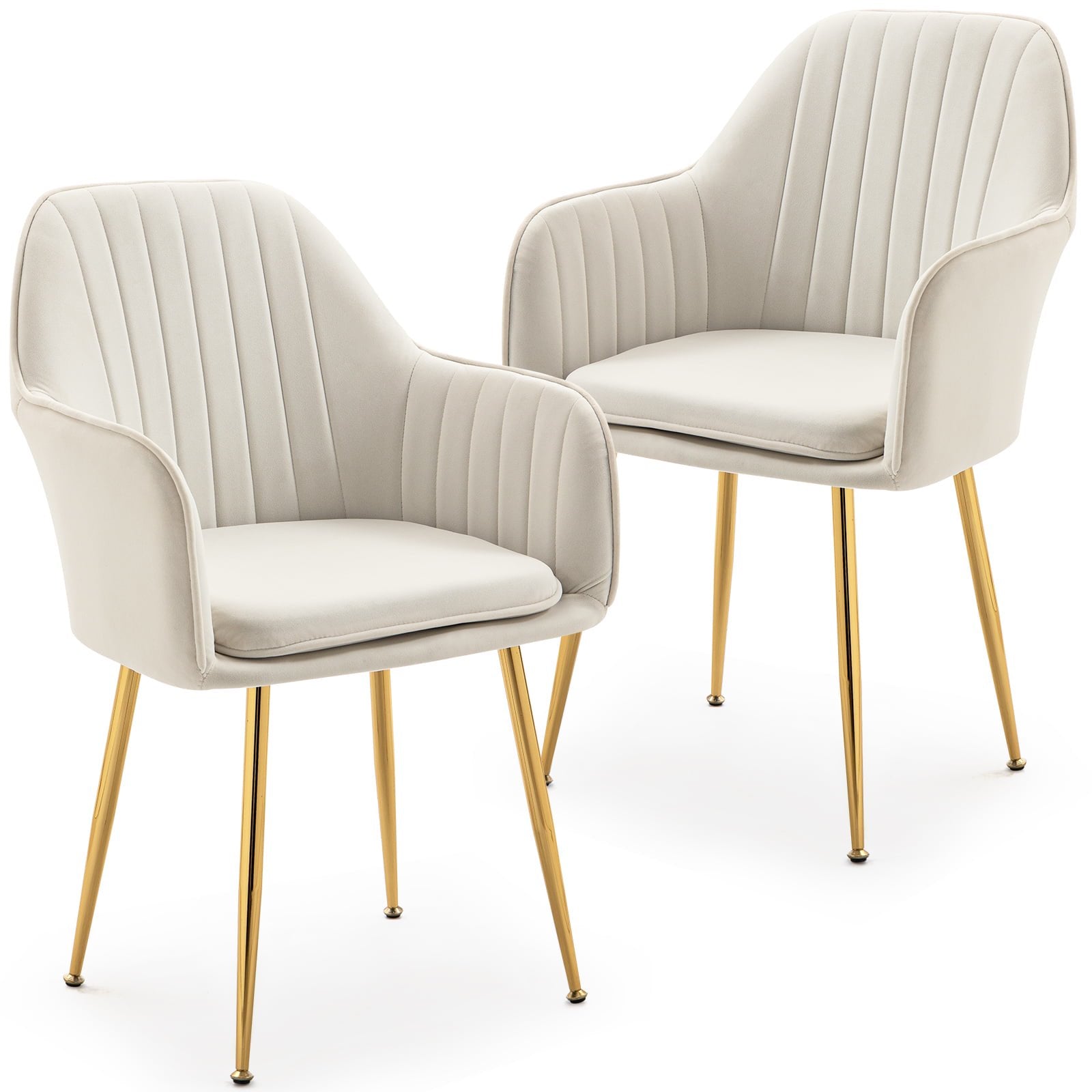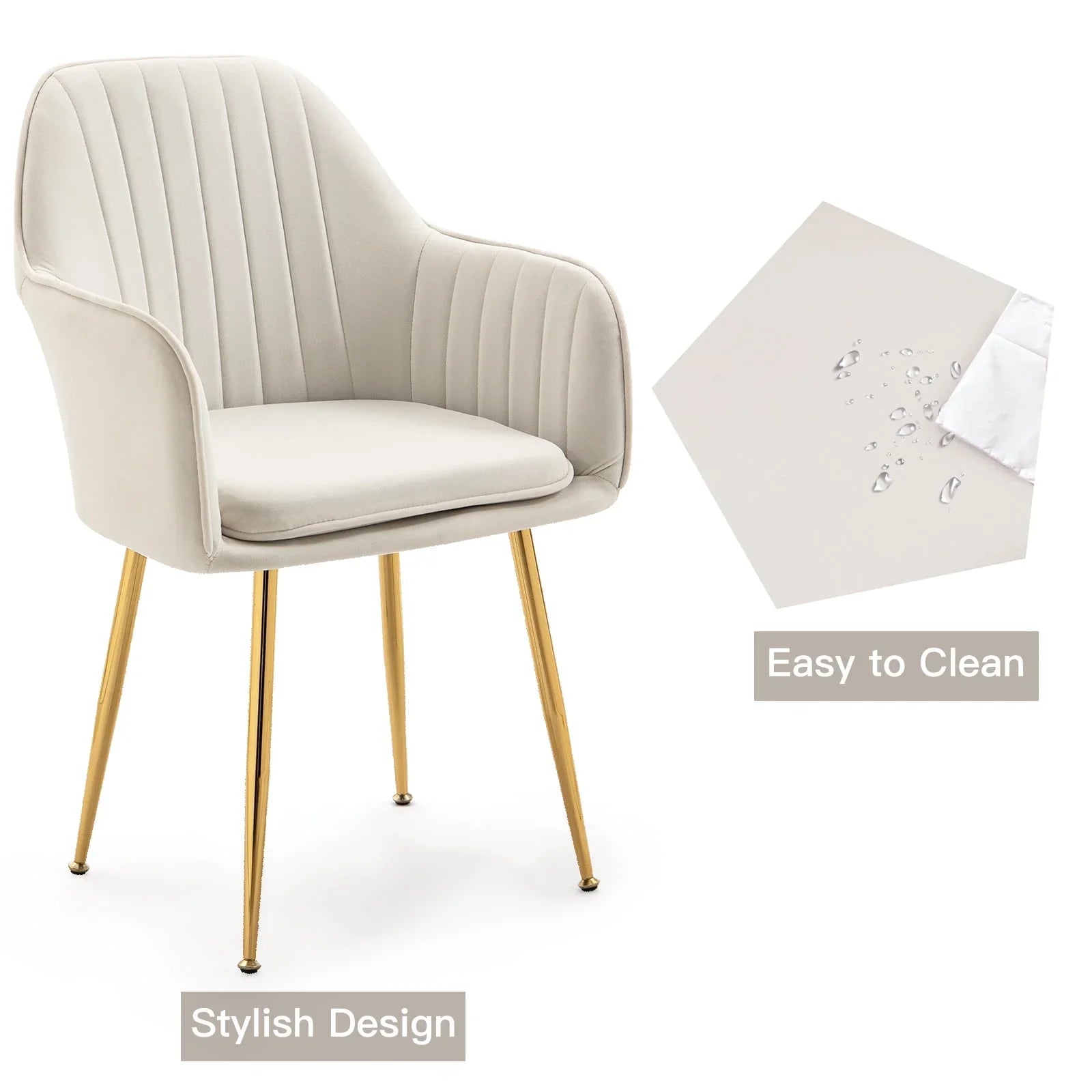 HOMHUM Accent Arm Chairs Upholstered Velvet Dining Chairs Set of 2, Golden Legs, Indoor, Beige