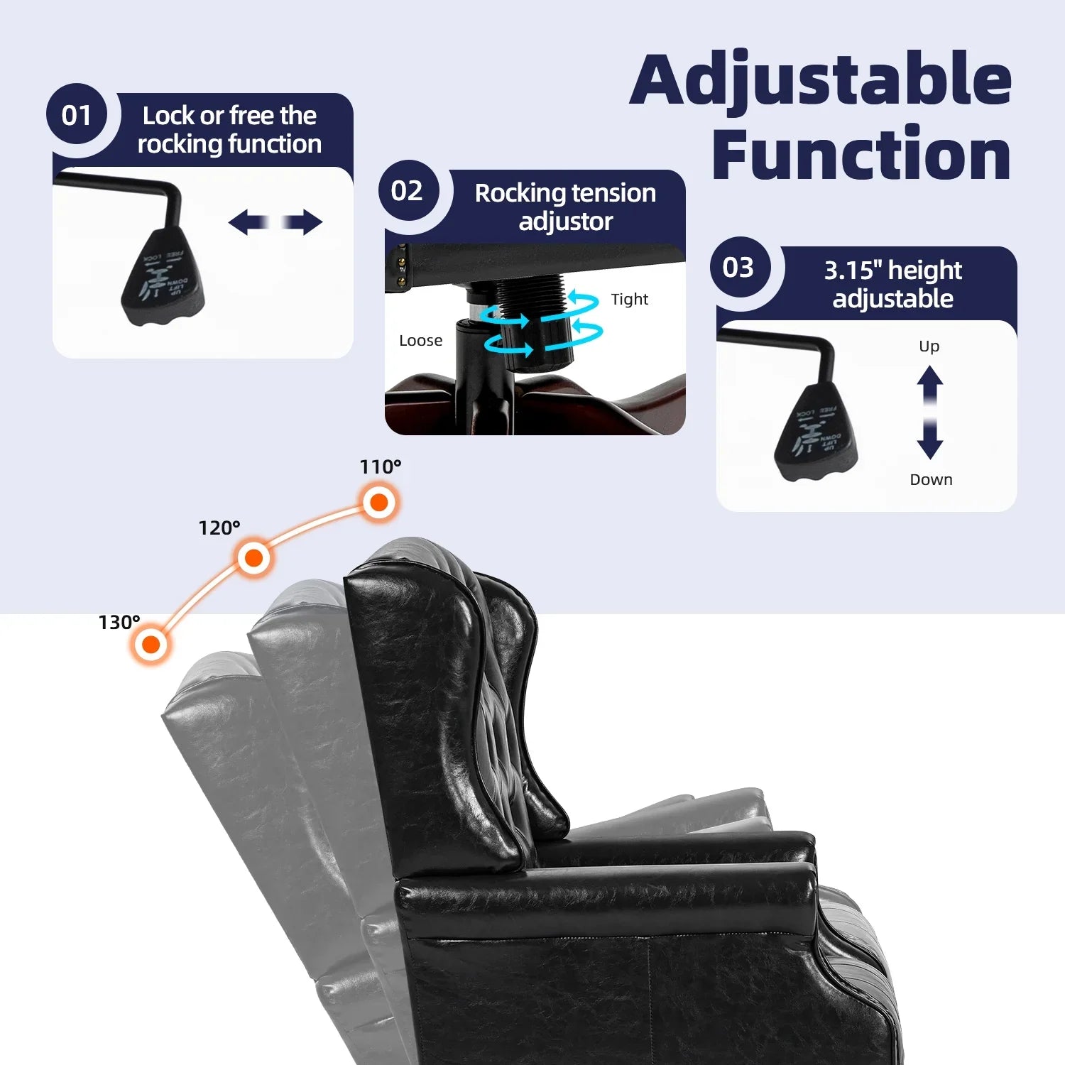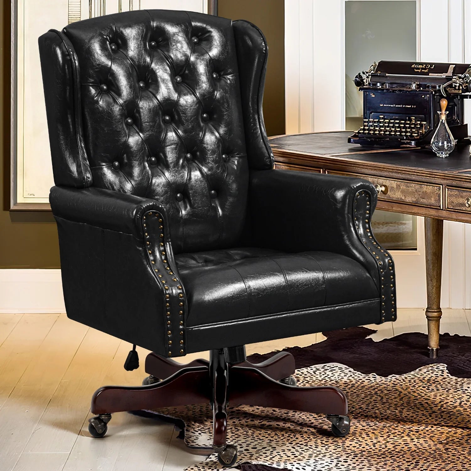HOMHUM Classic Boss Chair Wingback Traditional Chair High Back Faux Leather Chair Ergonomic Executive Office Chair Swivel Desk Chair, Black