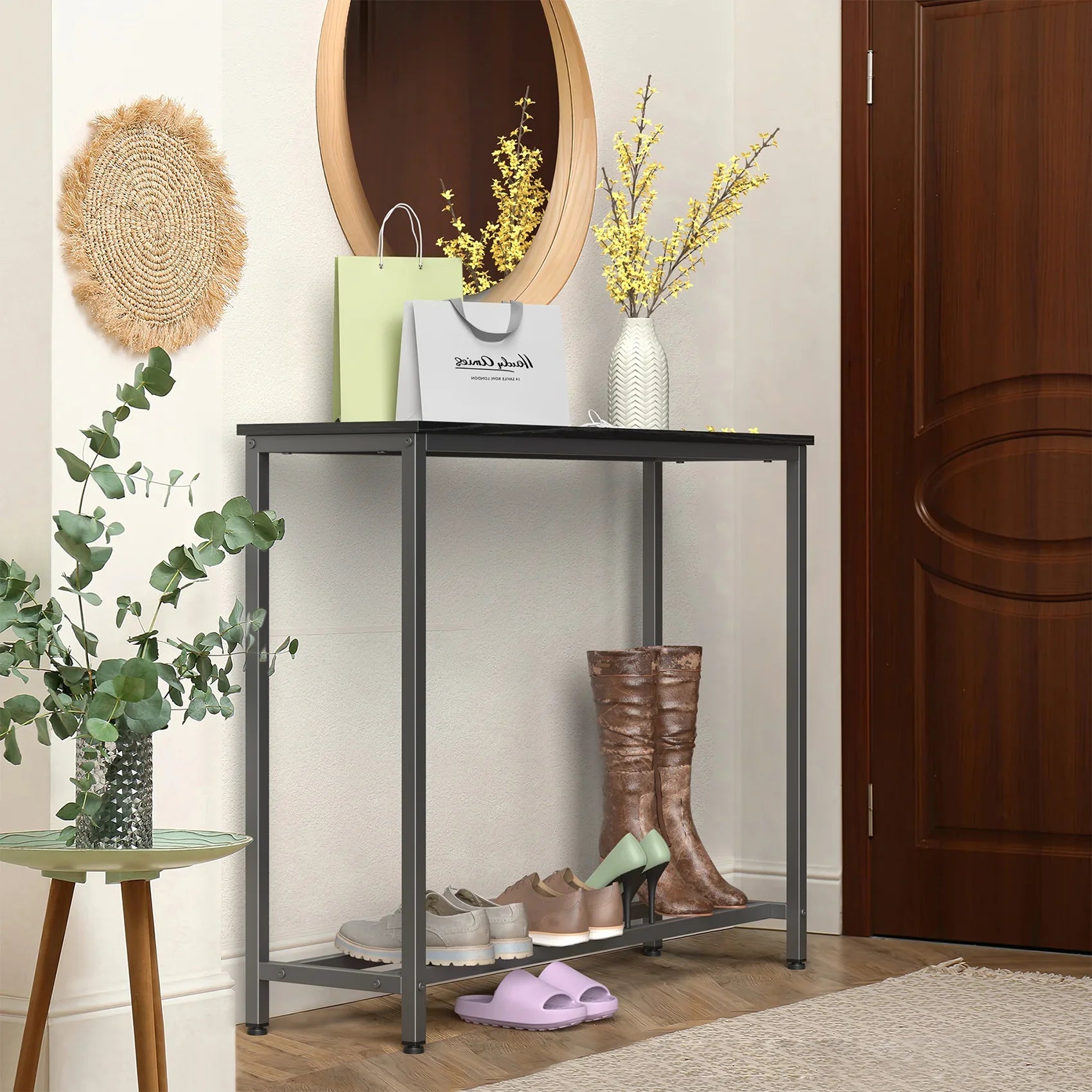 JOZ Industrial Narrow Console Table with Shelves, Black