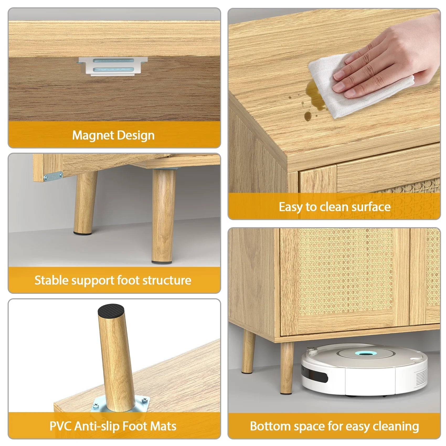 JOZ Wooden Sideboard Buffet Cabinet with Storage, Rattan Door and Solid Wooden Feet, for Kitchen, Hallway, Entry and Living Room, Natural