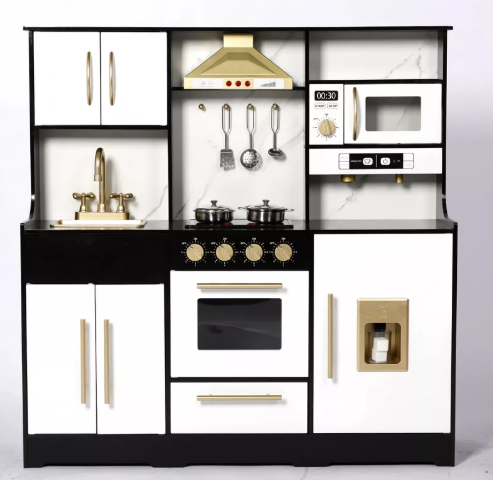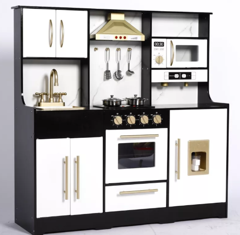 Kinder King Wooden Kids Play Kitchen, Toy Kitchen Playset for Toddler, Realistic Kitchen Sets w/Lights & Sounds, Gift for Boys Girls Age 3+