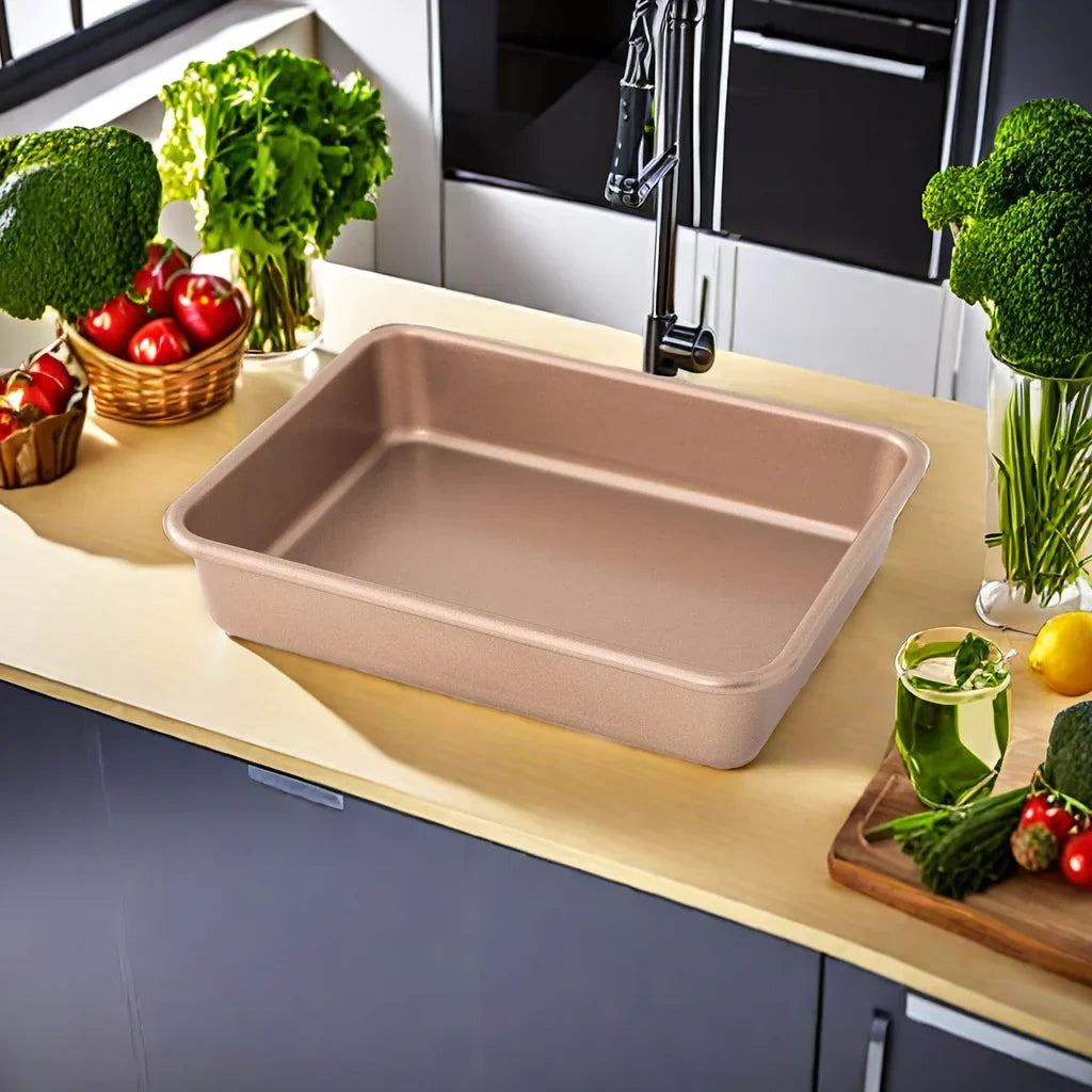 LIMICAR 3-Piece Baking Pan Set,Sheet Cake Pans,Deep Baking Cookie Sheets, Heavy Duty Bakeware Set for Oven Roasting Cooking(Gold)