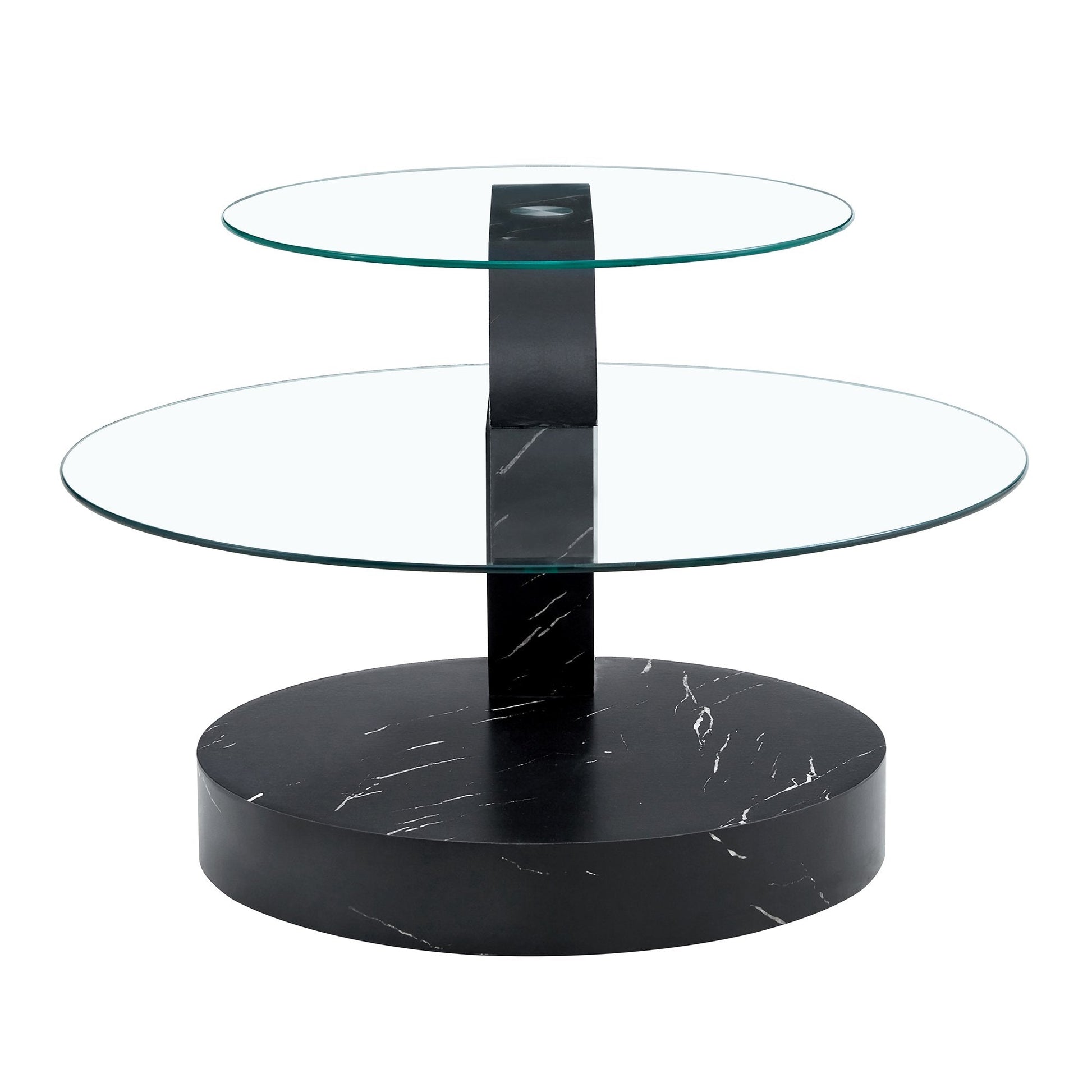 Modern Double Layer Round Glass Cofee Table for Small Space Home Office,42 Inch Black