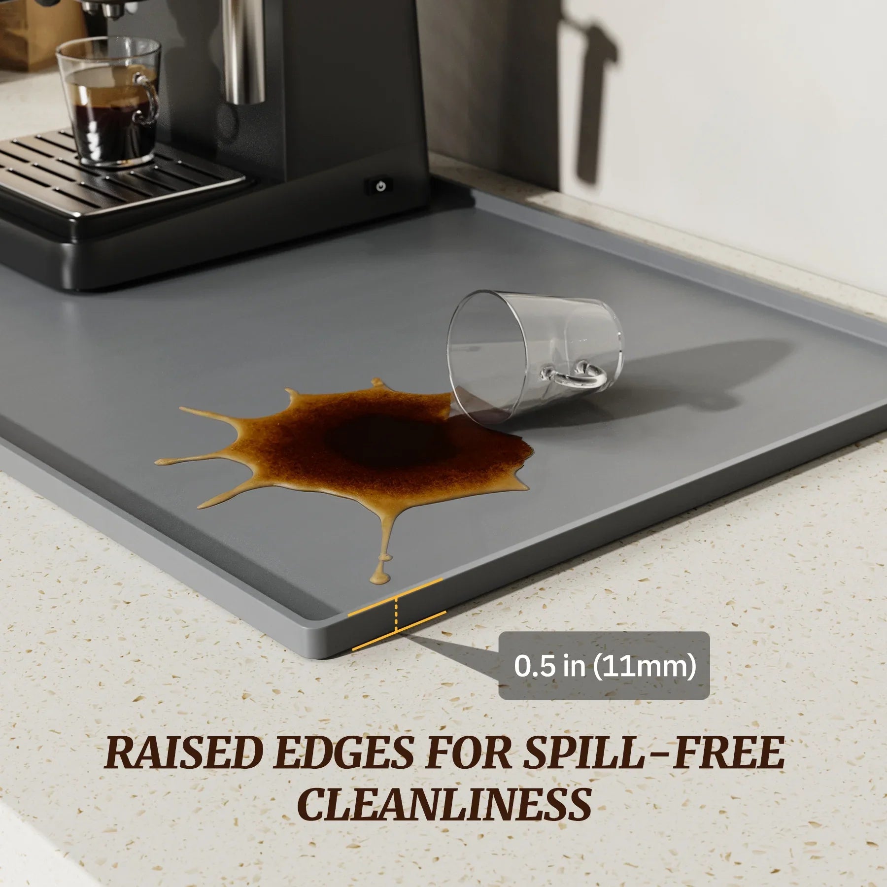 NiHome Silicone Coffee Bar Mat with Diatomaceous Earth Pad for Quick Drying, Non-Slip Spill-Proof Mat for Coffee Machines and Kitchen Countertops, Keeps Countertops Dry and Organized (Light Gray)