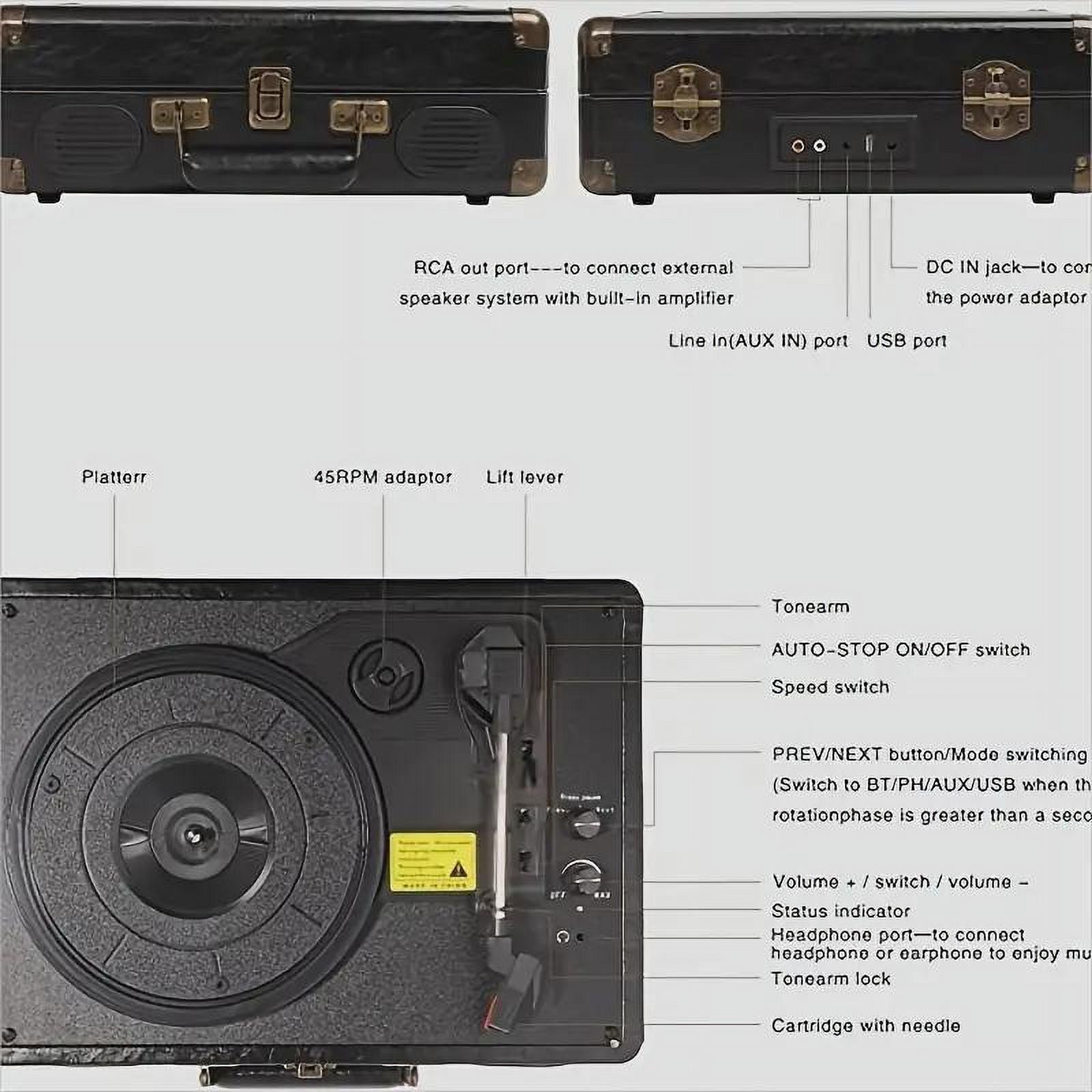 Record Player C260, 3-Speed 33/45/78RPM Vinyl Spinner with 2 Built-in Stereo Speakers, Headphone Jack, USB, AUX-IN,RCA-Out and Recording