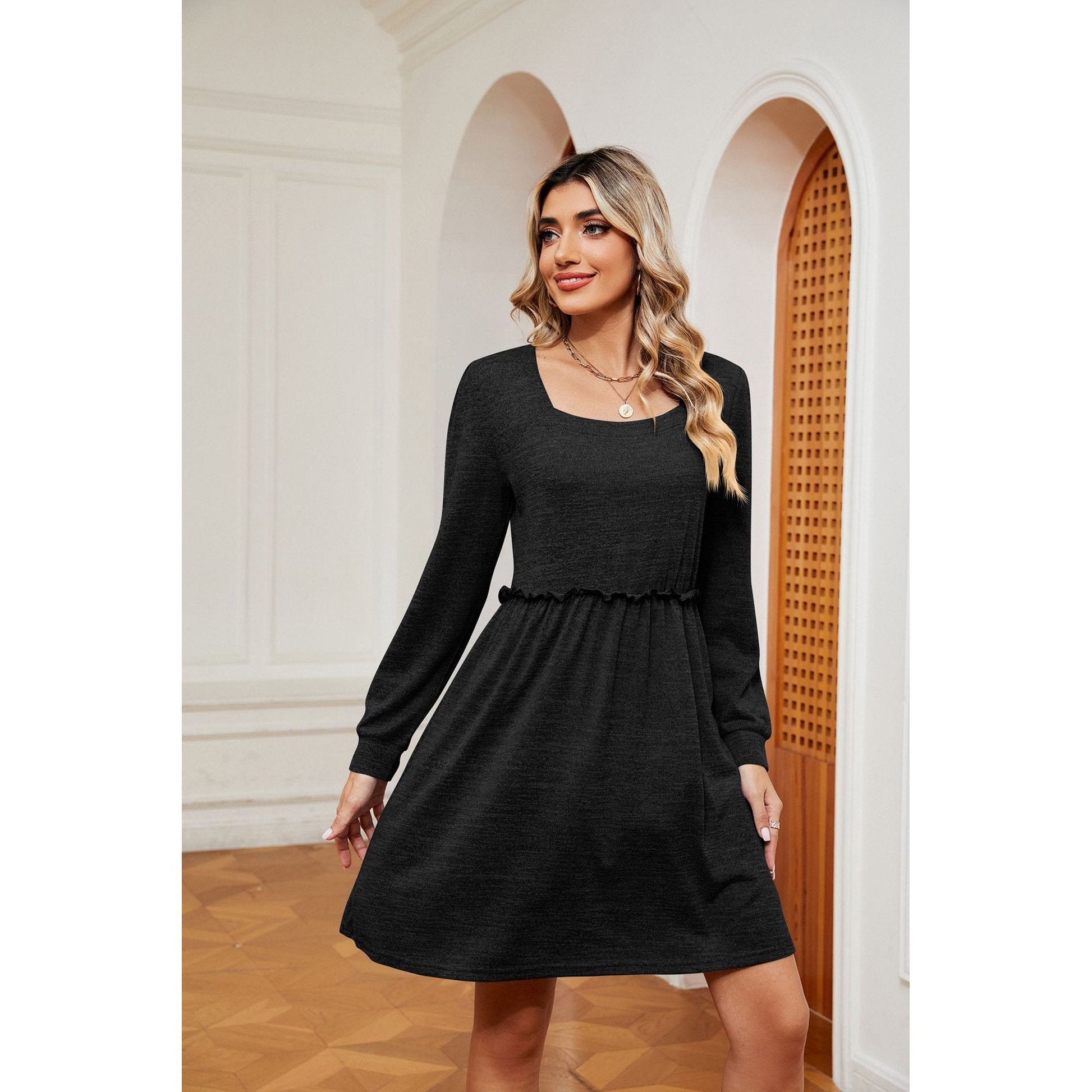 SHIBEVER Womens dress Square Neck shirt dress Long Sleeve Casual Puff Sleeves fall Frock Babydoll Skirt Solid Color Skirts Casual clothes