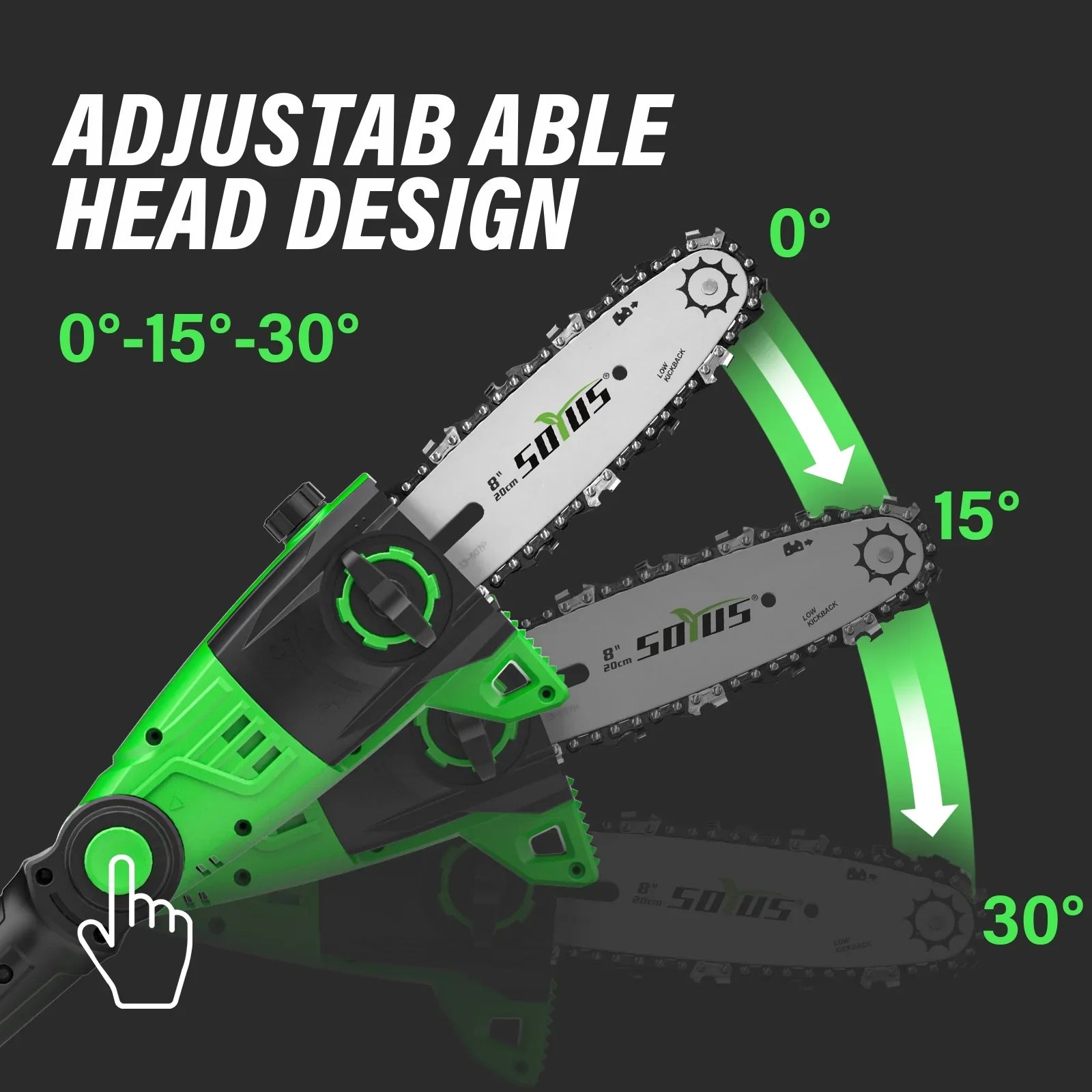 SOYUS 8" Cordless Pole Saw and 18" Pole Hedge Trimmer 2-in-1, Pole Saws for Tree Trimming + 2.0 Ah Battery & Charger
