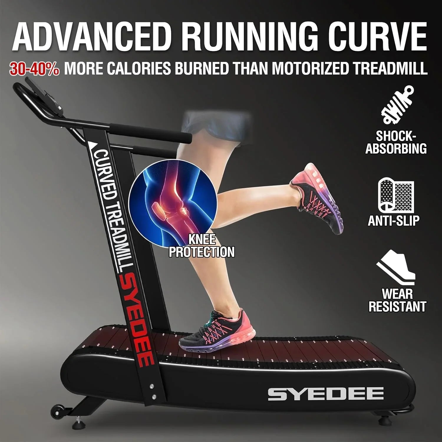 Syedee Premium Portable Curved Manual Treadmill, Motorless Treadmill for Marathon, Air Running with Digital Monitor, Handlebar and Non-Slip Belt, Treadmill for Home Gym, Cardio Equipment