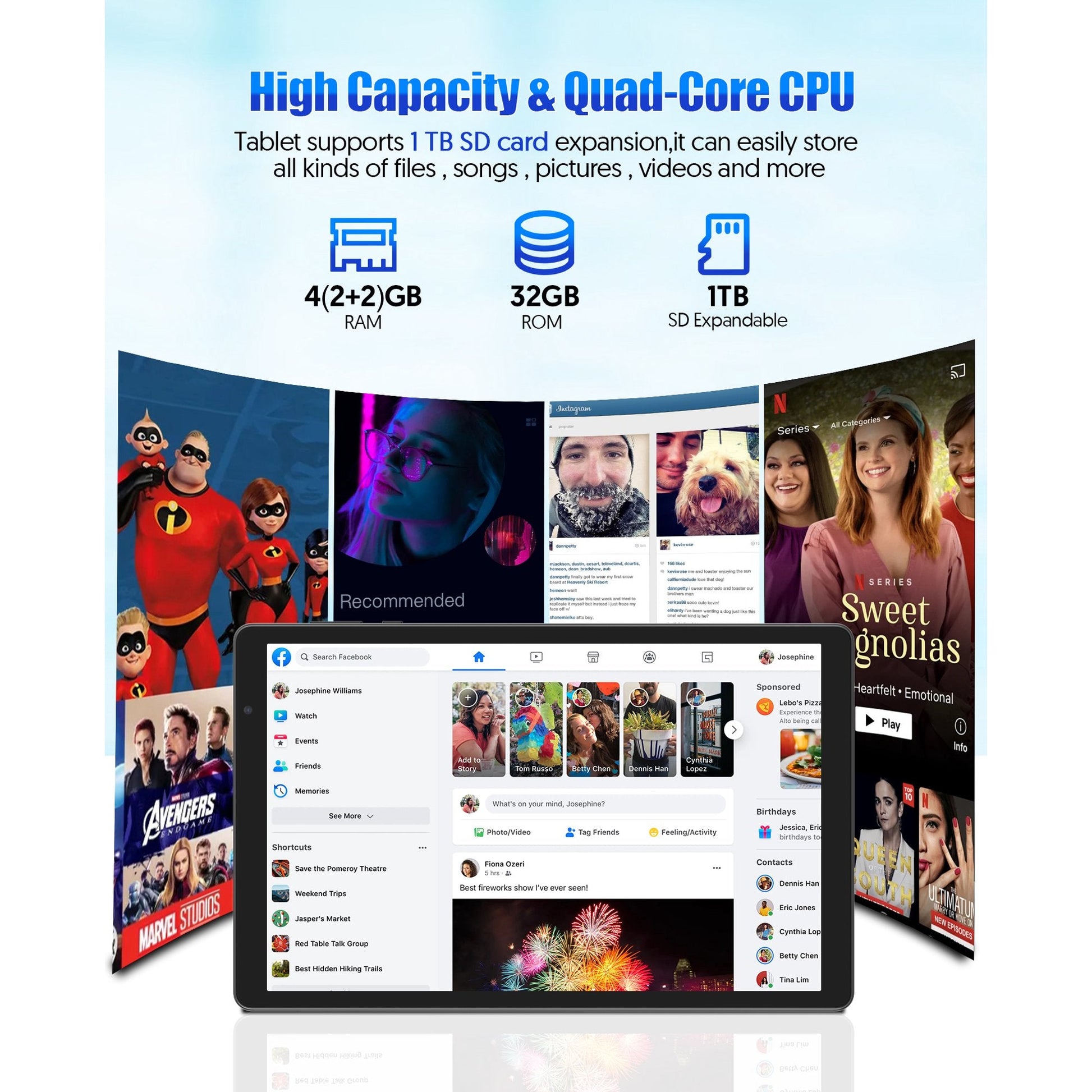Tablet 10 inch Android Tablets, Android 12 Tablet Quad Core Processor (2+2) 4GB RAM 32GB ROM, 1TB Expandable Tablet Computer, 6000mAh Battery, 1280 * 800 IPS Screen, Bluetooth, WiFi (Gray)