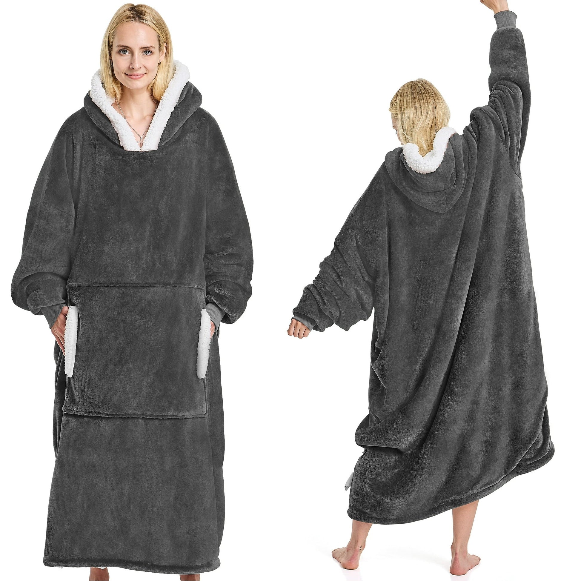 Wearable Blanket Hoodie, Flannel Sherpa Fleece Blanket Sweatshirt for Adults Women Men