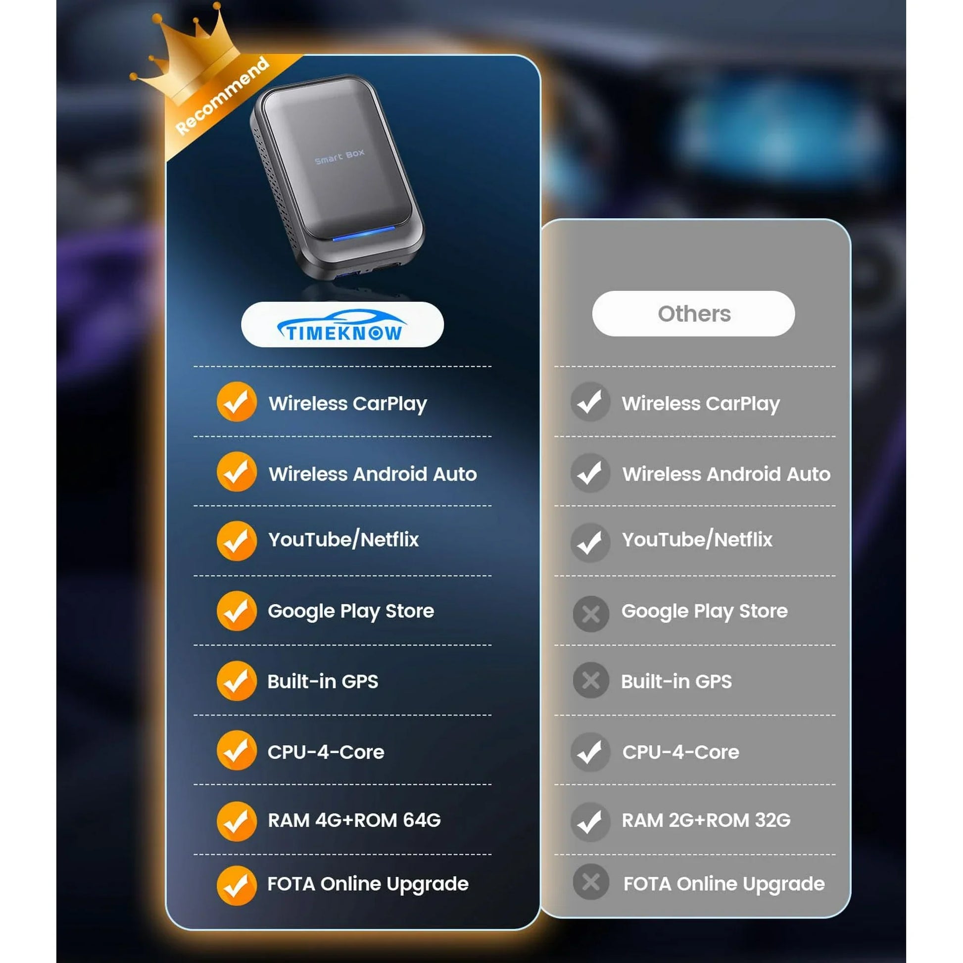 Wireless CarPlay Adapter, Magic Box Support Google Play/Netflix/YouTube/TF&SIM Card/, Apple CarPlay/Android Auto Wireless CarPlay Adapter for OEM Wired CarPlay Cars