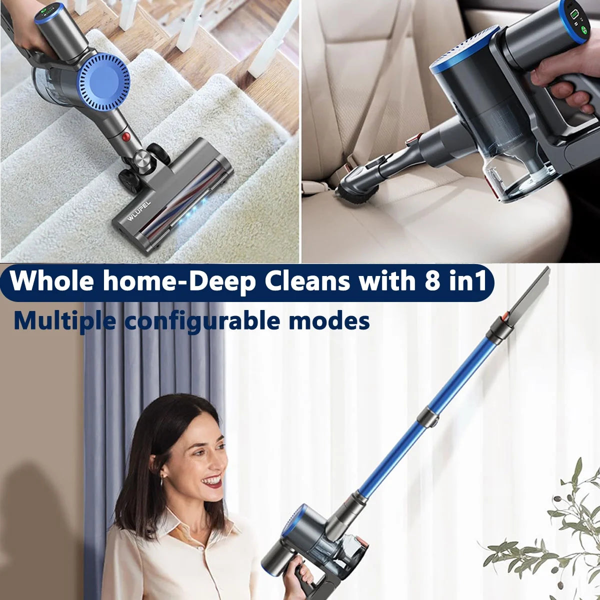 WLUPEL Cordless Vacuum,45mins Cordless Stick Vacuum with IQ Display Lightweight Vacuum for Hardwood Floor Carpet Pet Hair Home Rechargeable