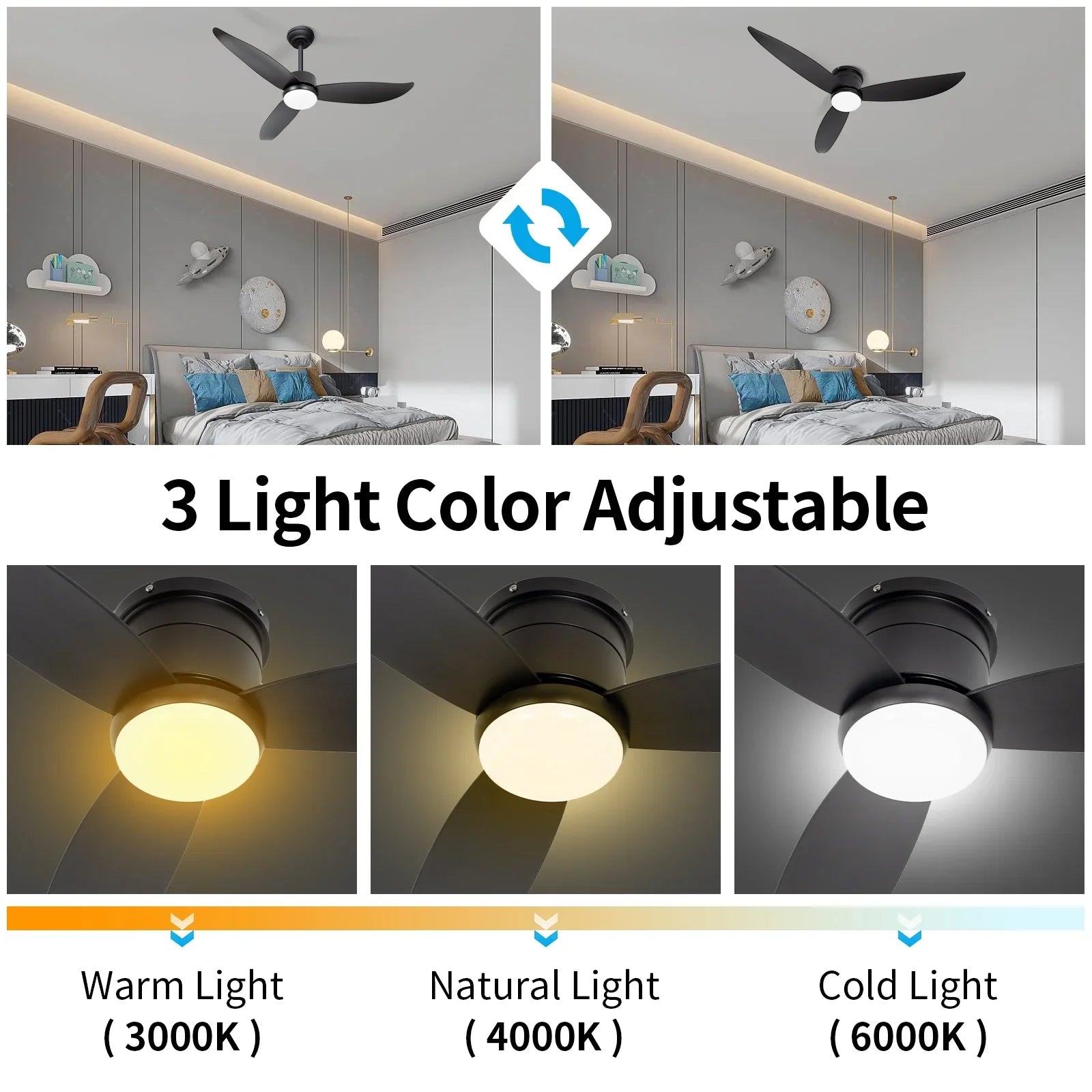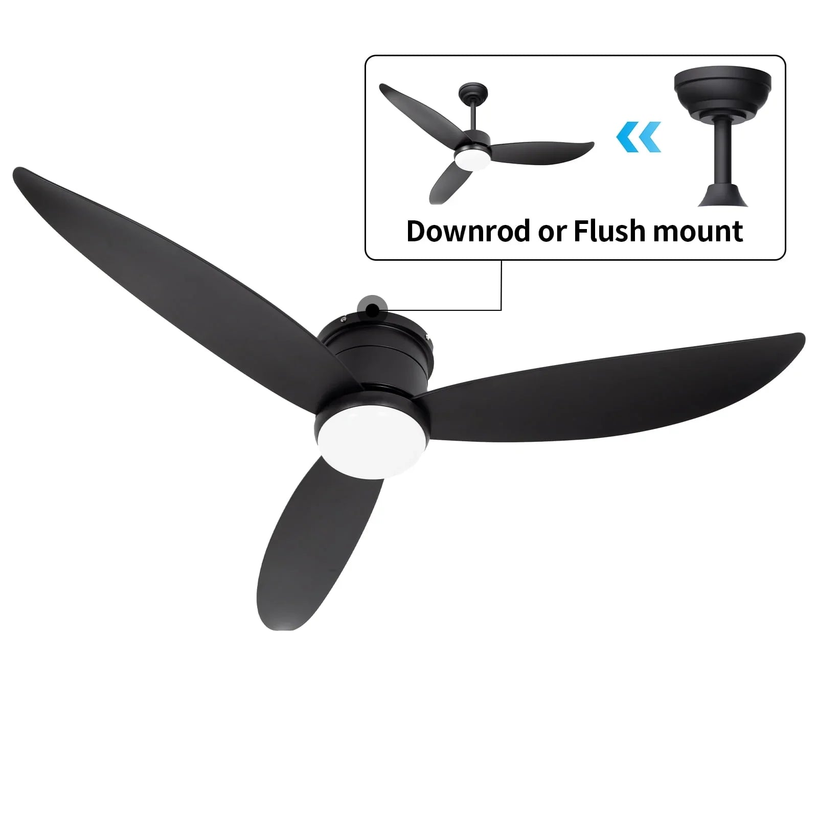 Wozzio 52'' Black Ceiling Fan with Light and Remote Control, 2 Options Installations, 3 ABS Fan Blades, Home