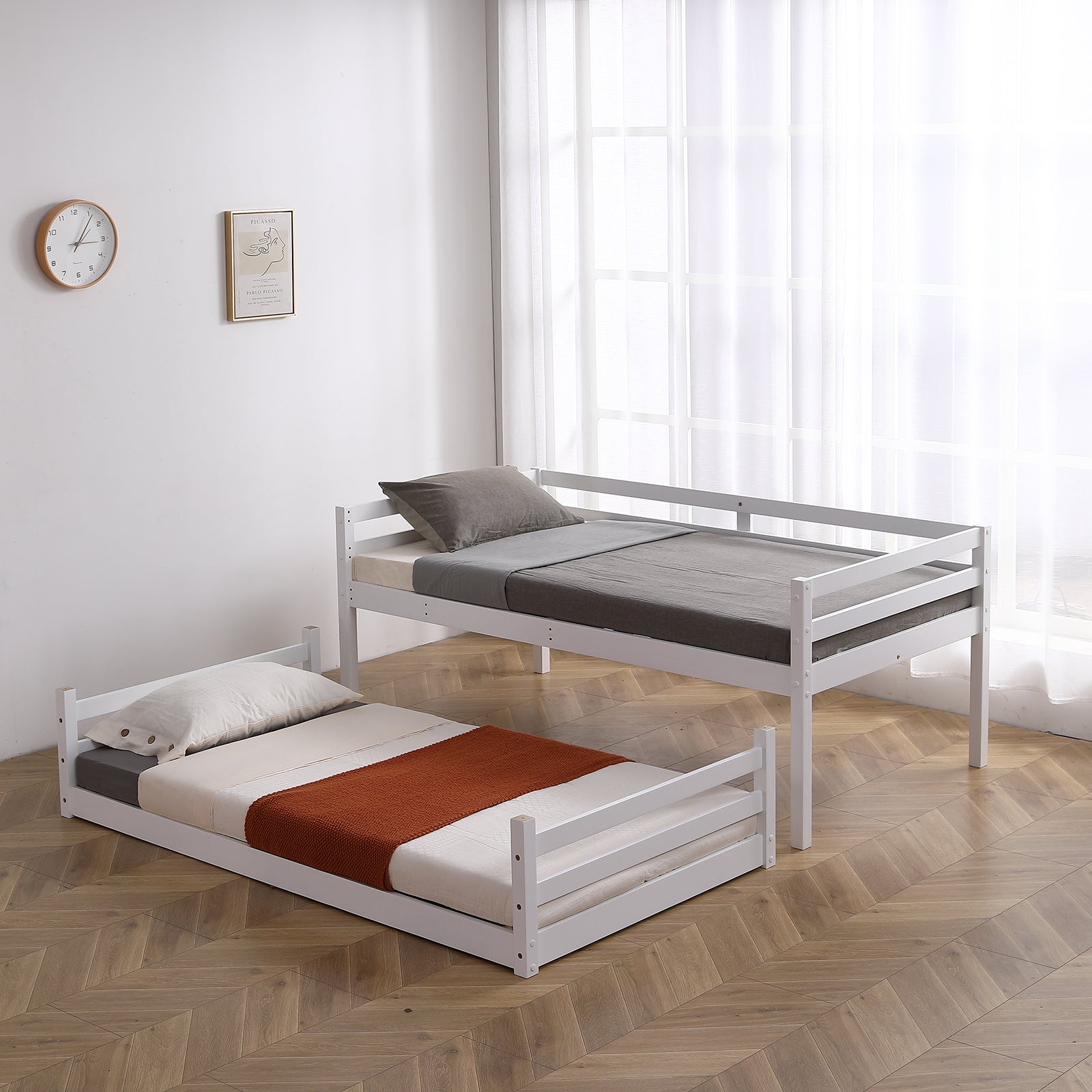 Zimtown Bunk Bed Twin Over Twin,Kids Low Floor Bunk Bed with Guard Rails for Children Boys Girls Dormitory Bedroom,No Box Spring Needed,White