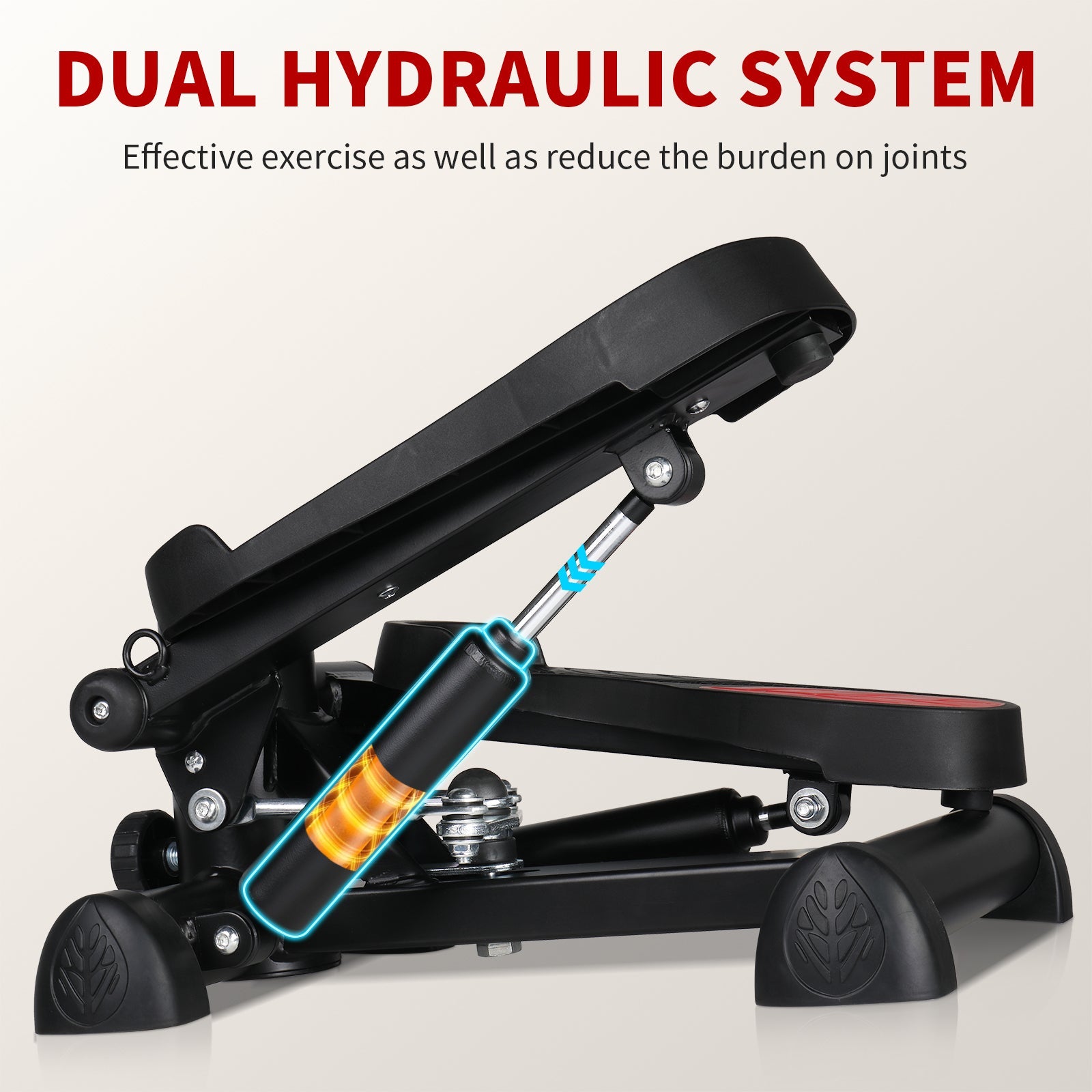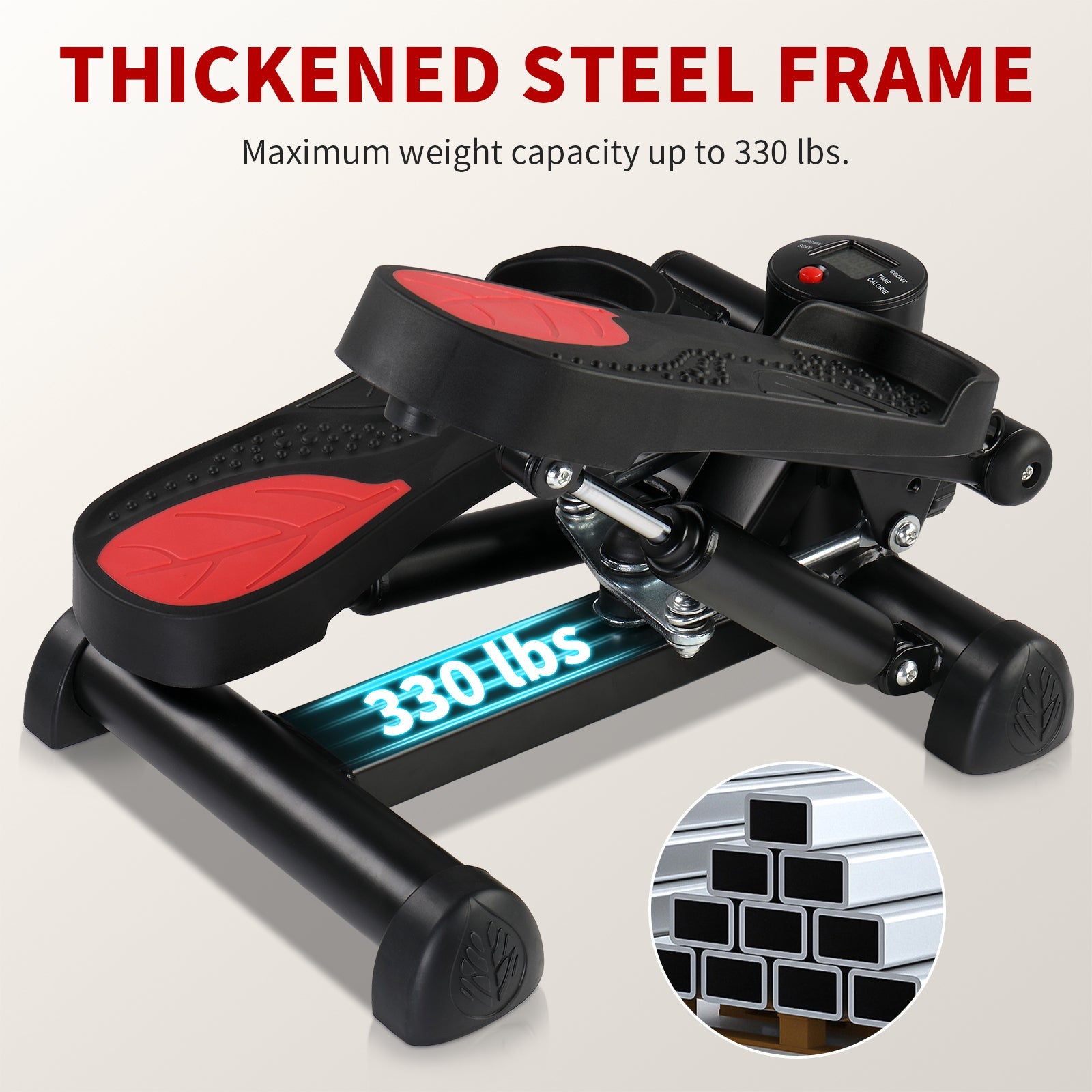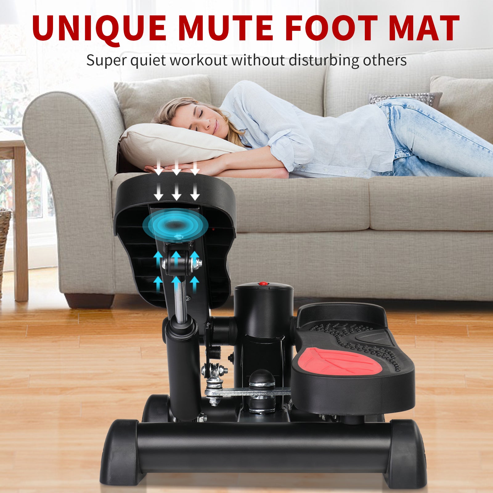 Zimtown Mini Stair Stepper with Resistance Bands, Portable Stepper Exercise Machine, Adjustable Resistance Design, Red