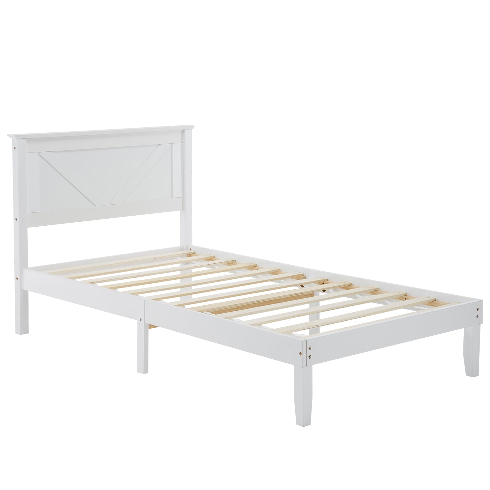 Zimtown Twin Bed Frame,Solid Pine Wood Kids Twin Platform Bed Frame, Bedroom Twin Bed with Headboard for Adults, White