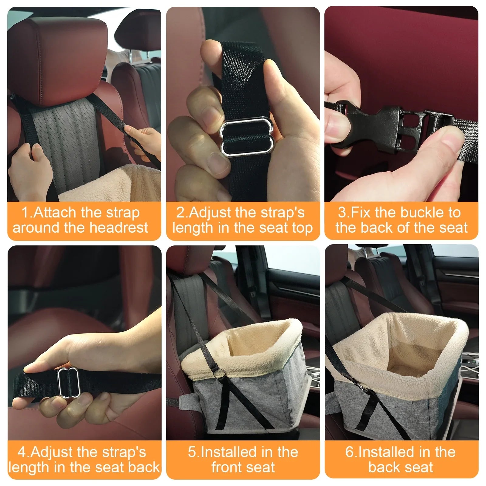 ZUPOX Dog Car Seat for Small Dogs, Deluxe Dog Booster Seat with Metal Frame Construction and Safety Leash, Portable Puppy Dog Car Seat, Perfect for Small Pets, Grey
